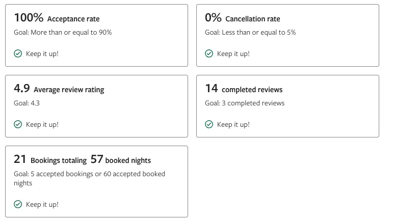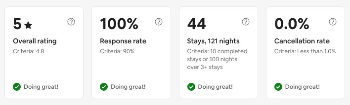 To be a Superhost you need to hit certain service criteria each quarter. The secret? Handling the service challenges well. We believe in the same guest-centric philosophy as Disneyland- the guest may not always be right, but they will always be our guest.